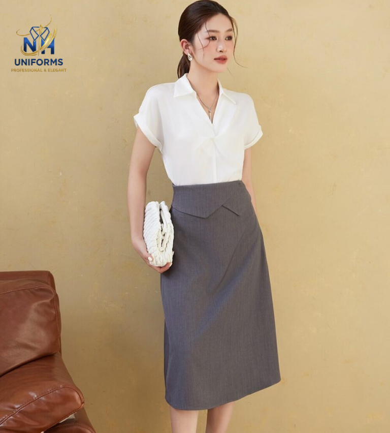 - Chân váy: Đối với nhân viên nữ, chân váy bút chì hoặc chân váy chữ A có độ dài ngang gối là chuẩn mực, vừa quyến rũ vừa kín đáo.