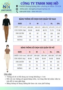Thông số Quần tây nam nữ